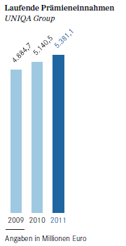 Die UNIQA Group ist in der Lebens- und Krankenversicherung und in nahezu allen Sparten der Schaden- und Unfallversicherung aktiv. Sie betreut rund 8,1 Millionen Kunden, mehr als 17 Millionen Versicherungsverträge mit einem verrechneten Prämienvolumen (inklusive der Sparanteile der fonds- und der indexgebundenen Lebensversicherung) von rund 6,0 Milliarden Euro (2010: 6,2 Milliarden Euro) und Kapitalanlagen von 24,6 Milliarden Euro (2010: 24,8 Milliarden Euro). Die UNIQA Group ist die zweitgrößte Versicherung Österreichs und verfügt über ein starkes Netzwerk in Zentral- und Osteuropa mit einer Präsenz in 16 Ländern.